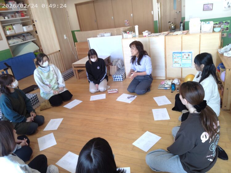 2026.02.24 【わらべ歌研修】今日は保育士さんで、わらべ歌遊びをたくさんしました。♬あ~ぶくたった~、にえたった~、♬1歳児さんでも上手に歌って遊べる人気の歌です!一年間わらべ歌研修を受けて、大人も子どもも癒され、幸せな時間が増えてとても嬉しかったです。