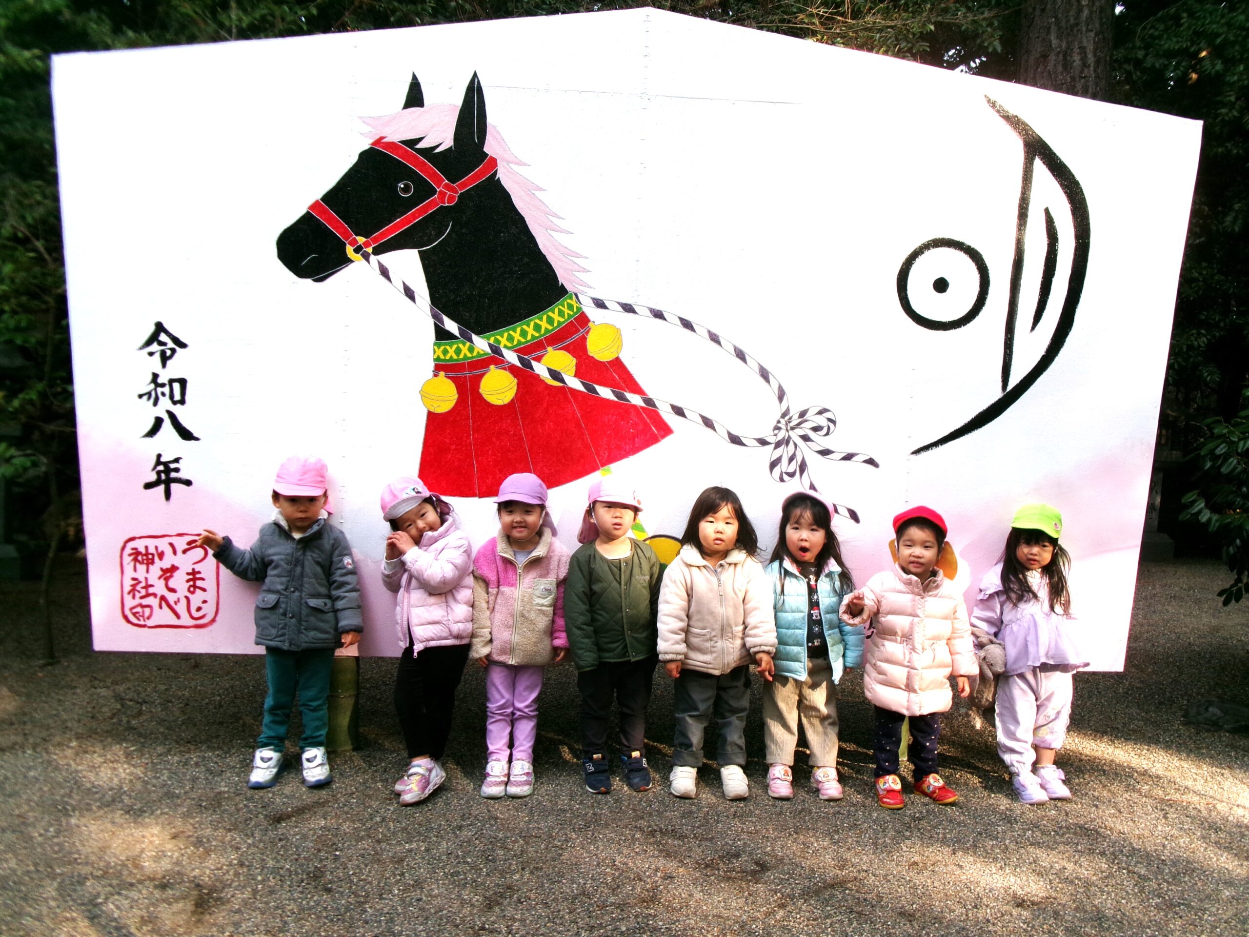 あけましておめでとうございます。本年もどうぞよろしくお願いします。幸多い一年になりますようにお祈りいたします。うまじいそべ神社にて。