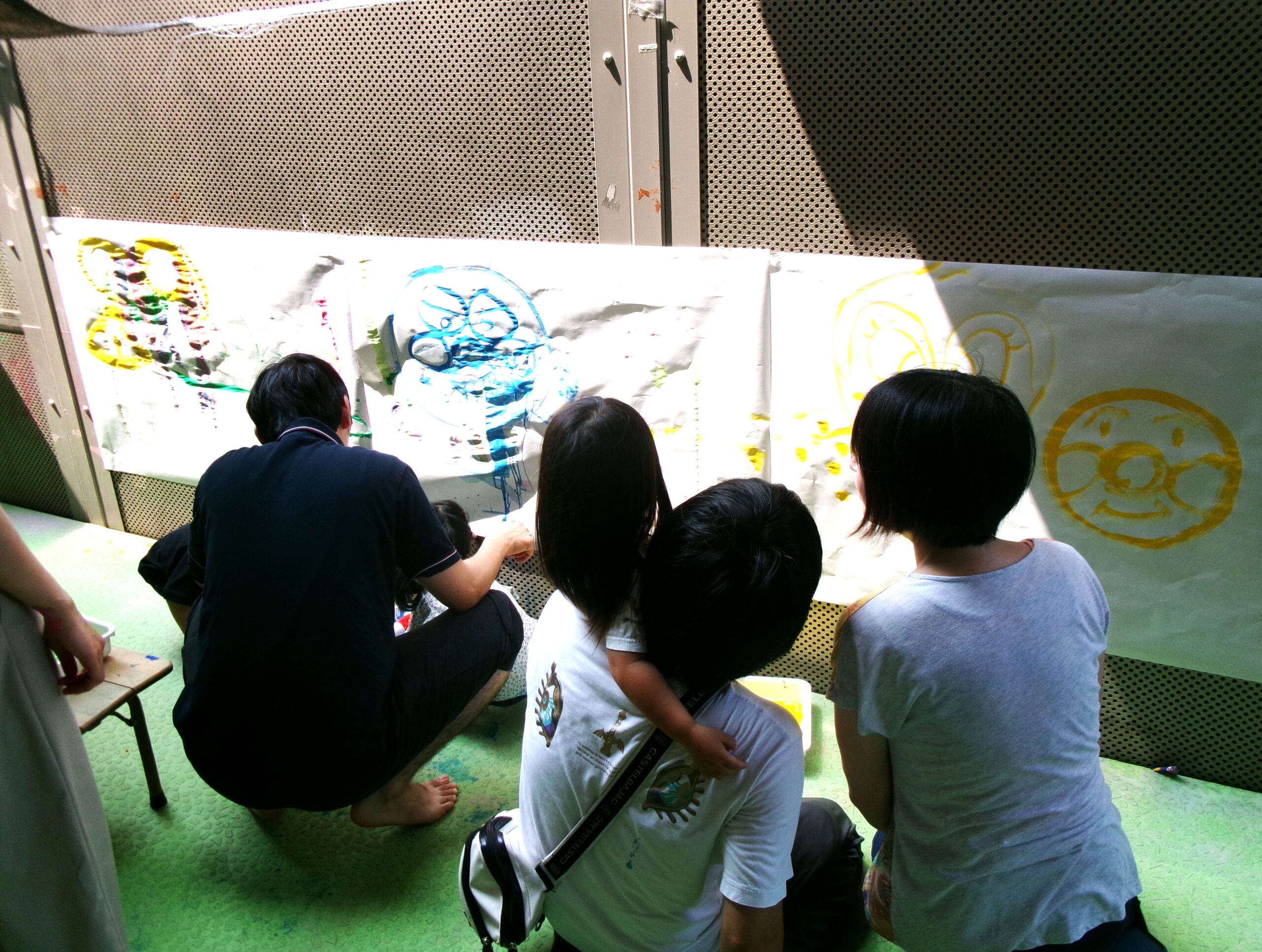 7/5(土)子育て広場”クララのおうち”〜絵の具で遊ぼう!inテラス〜を開催しました!大好きなママとパパと一緒に絵の具遊びができて、とても嬉しそうな子どもたちでした。