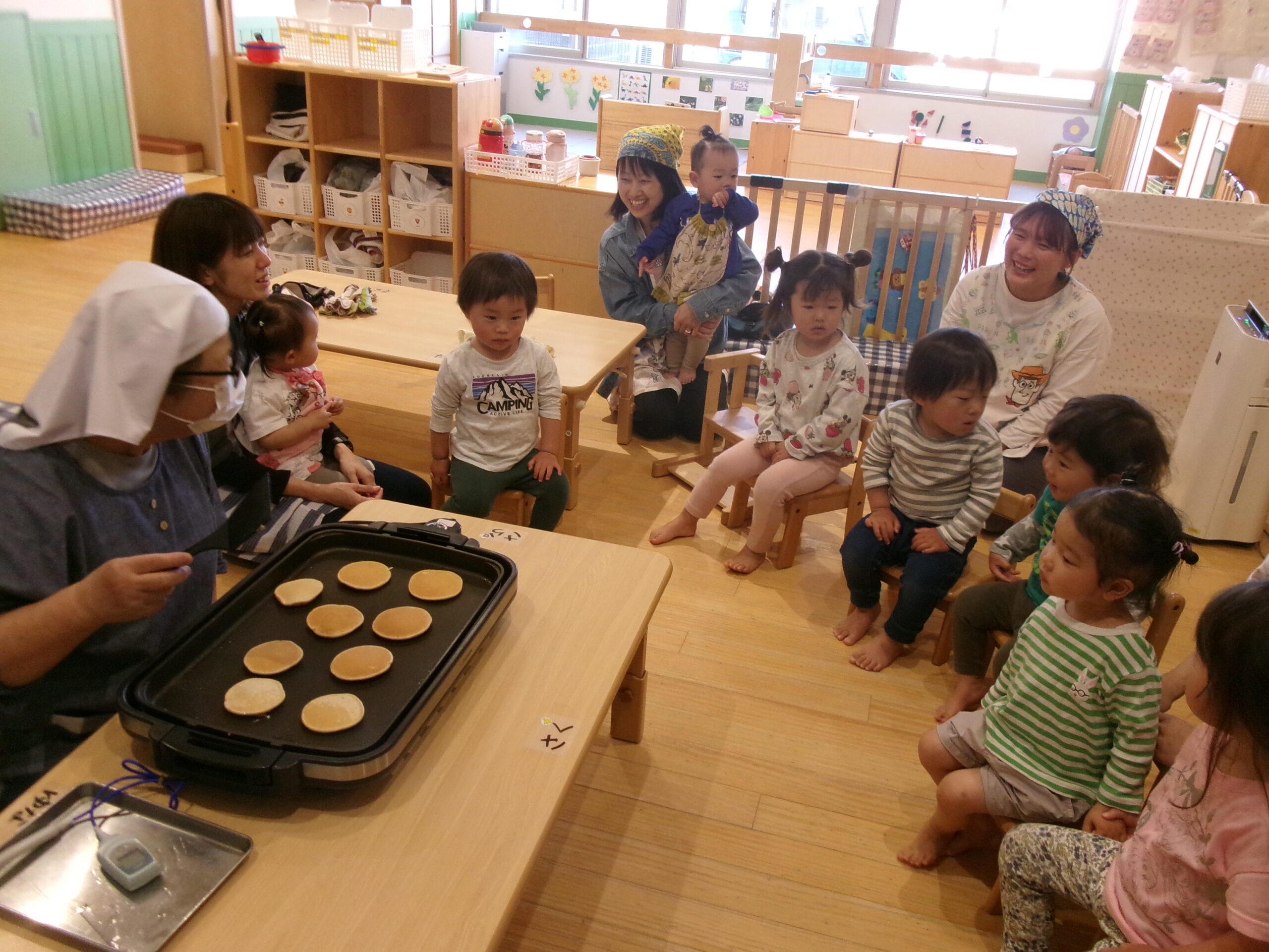 今日のおやつは、きなこ豆乳パンケーキ!あま~い匂いに包まれて♡