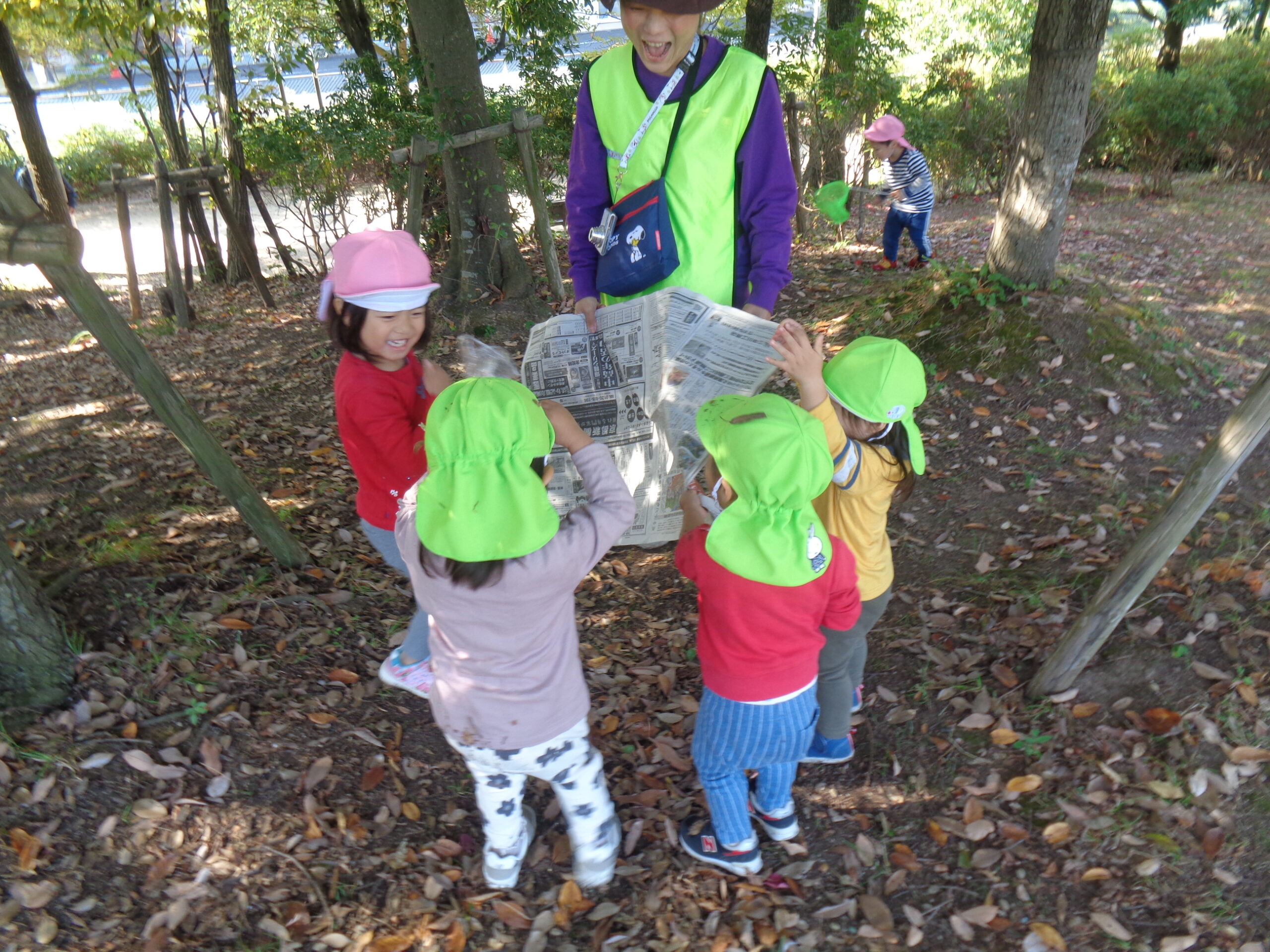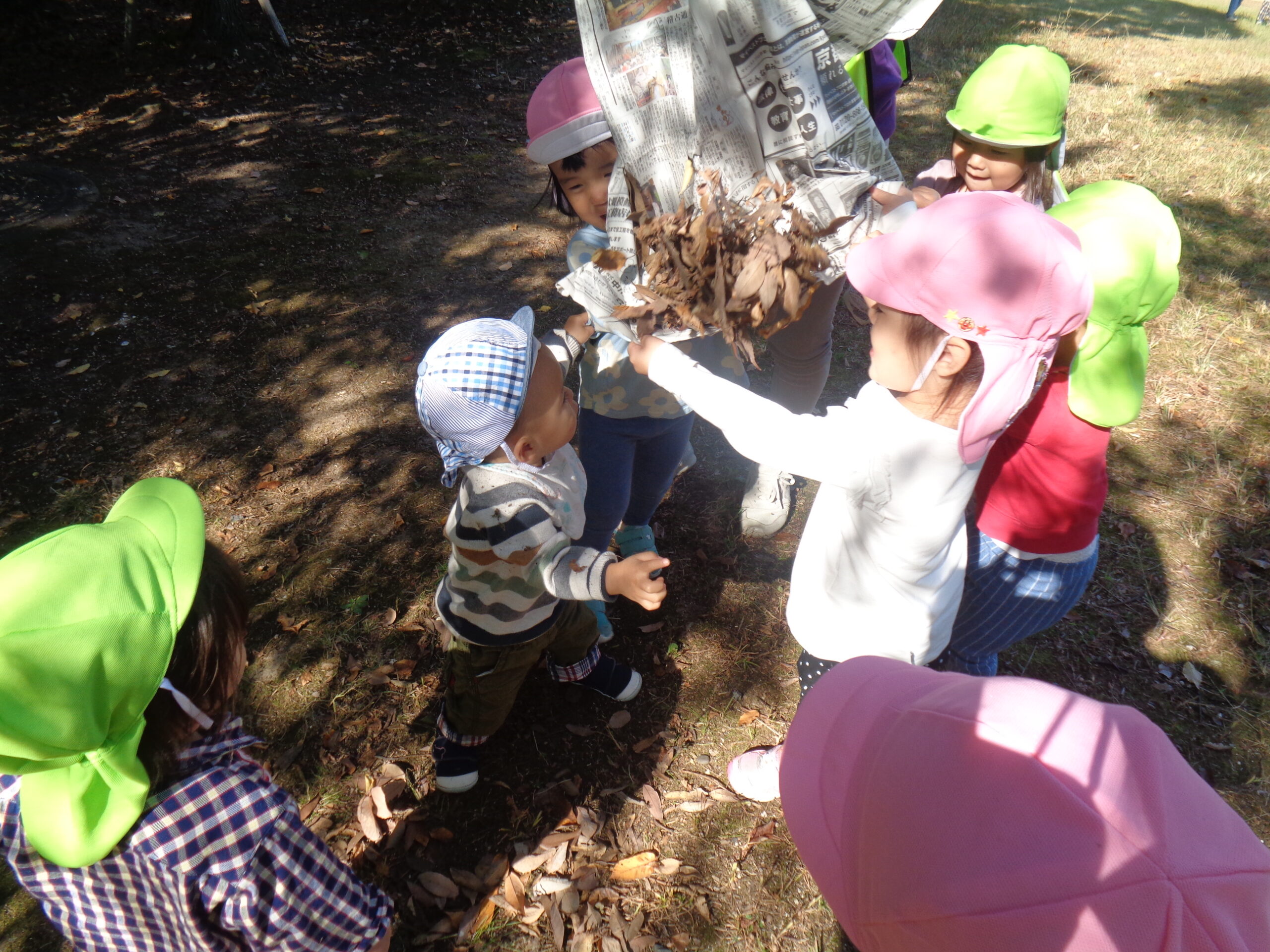 いっぱい集めて 葉っぱのシャワーだぁ~