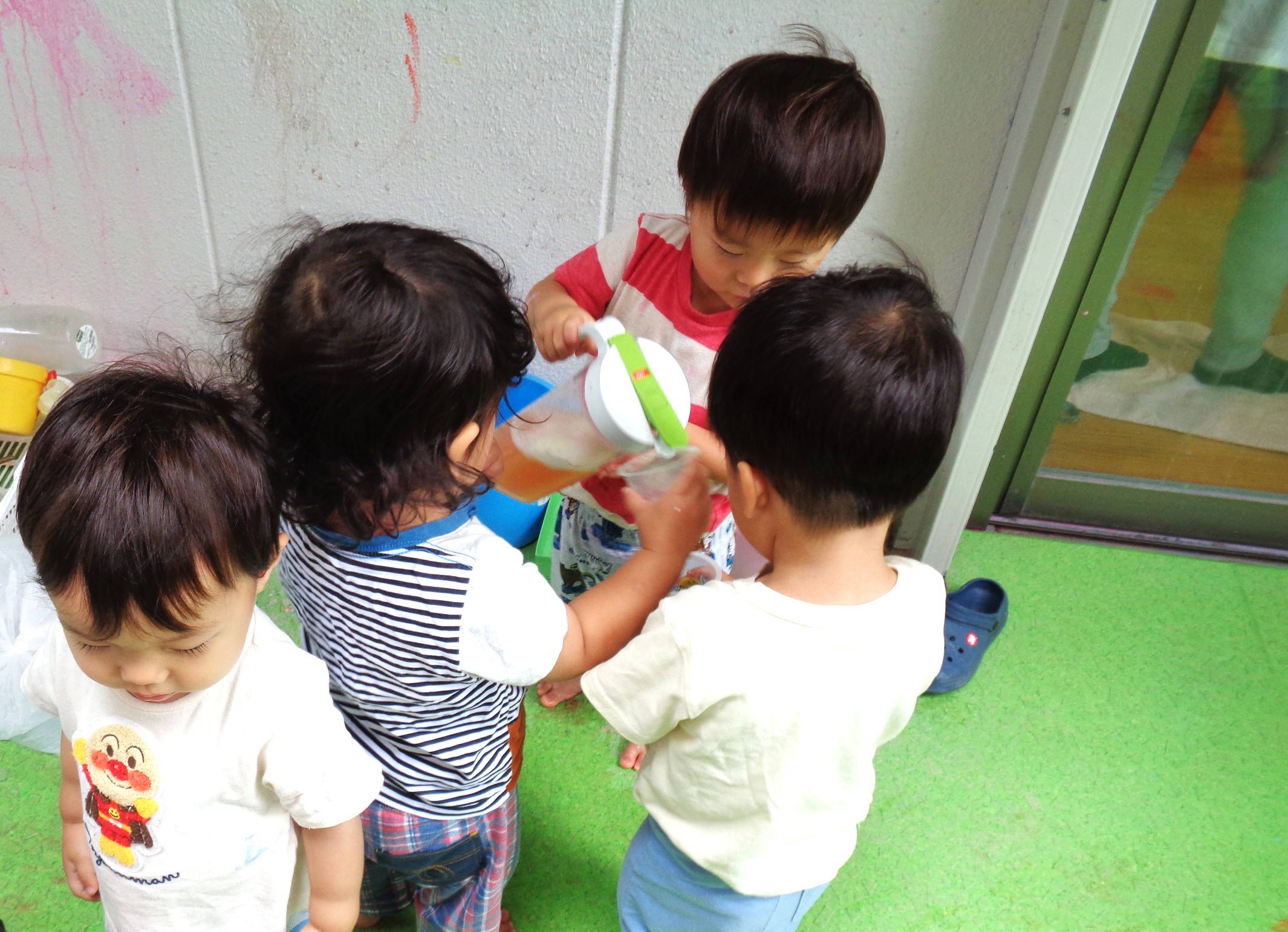 お茶はいりませんか〜?はーい!お茶下さい〜!!1歳児さんのかわいいジュース屋さん!