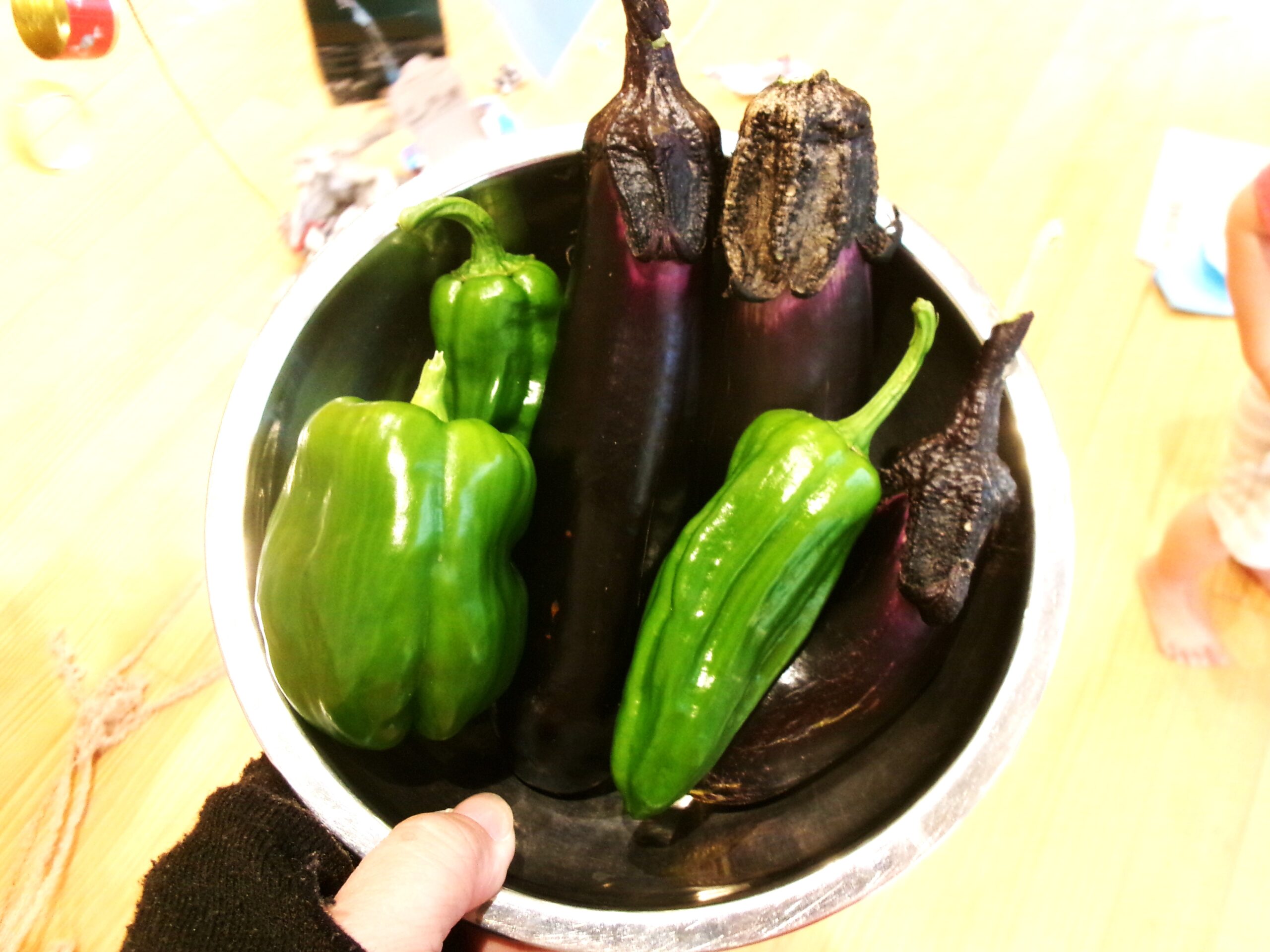 こんなに大きななすび!ピーマンも!おいしそう〜♪