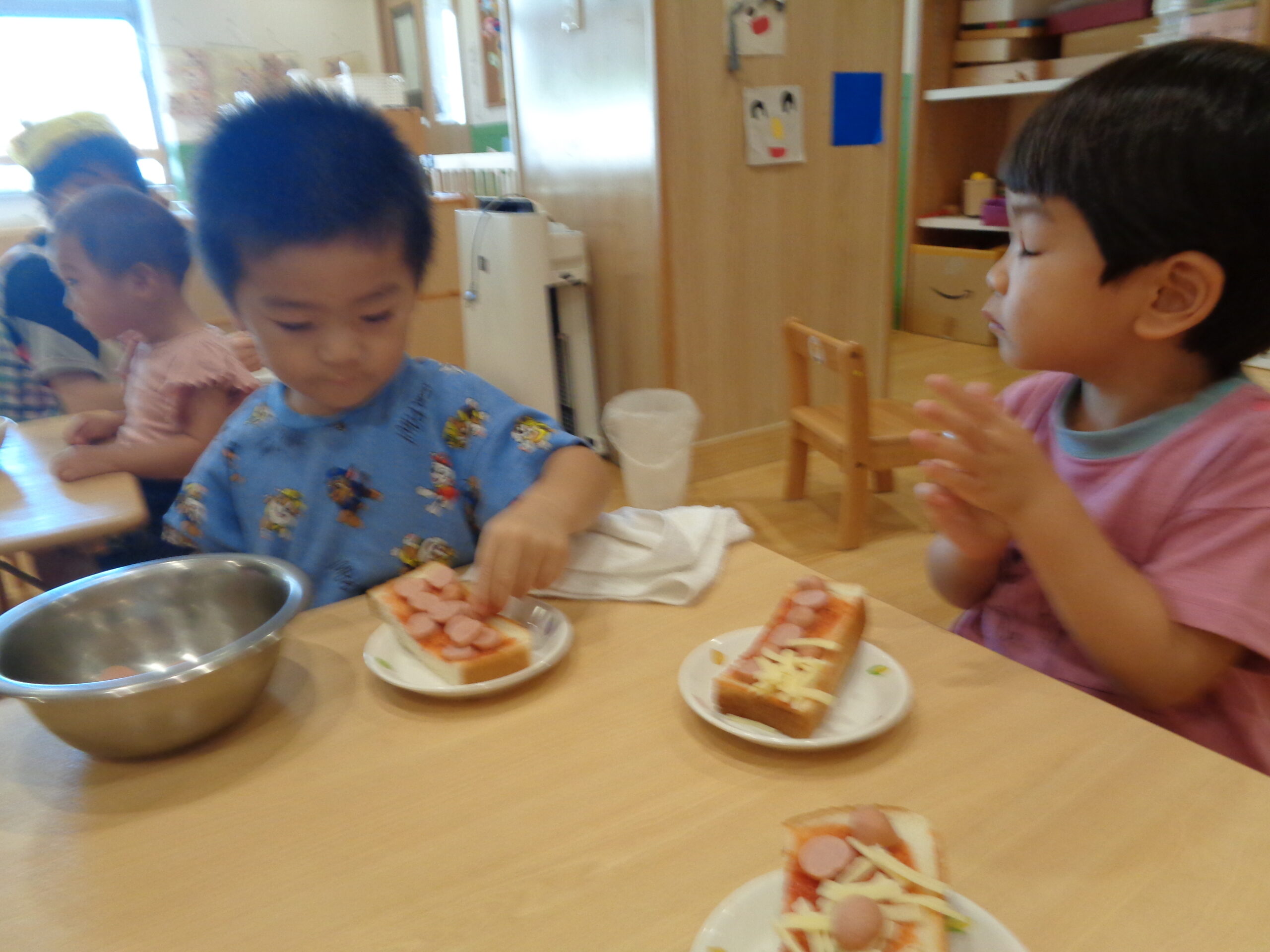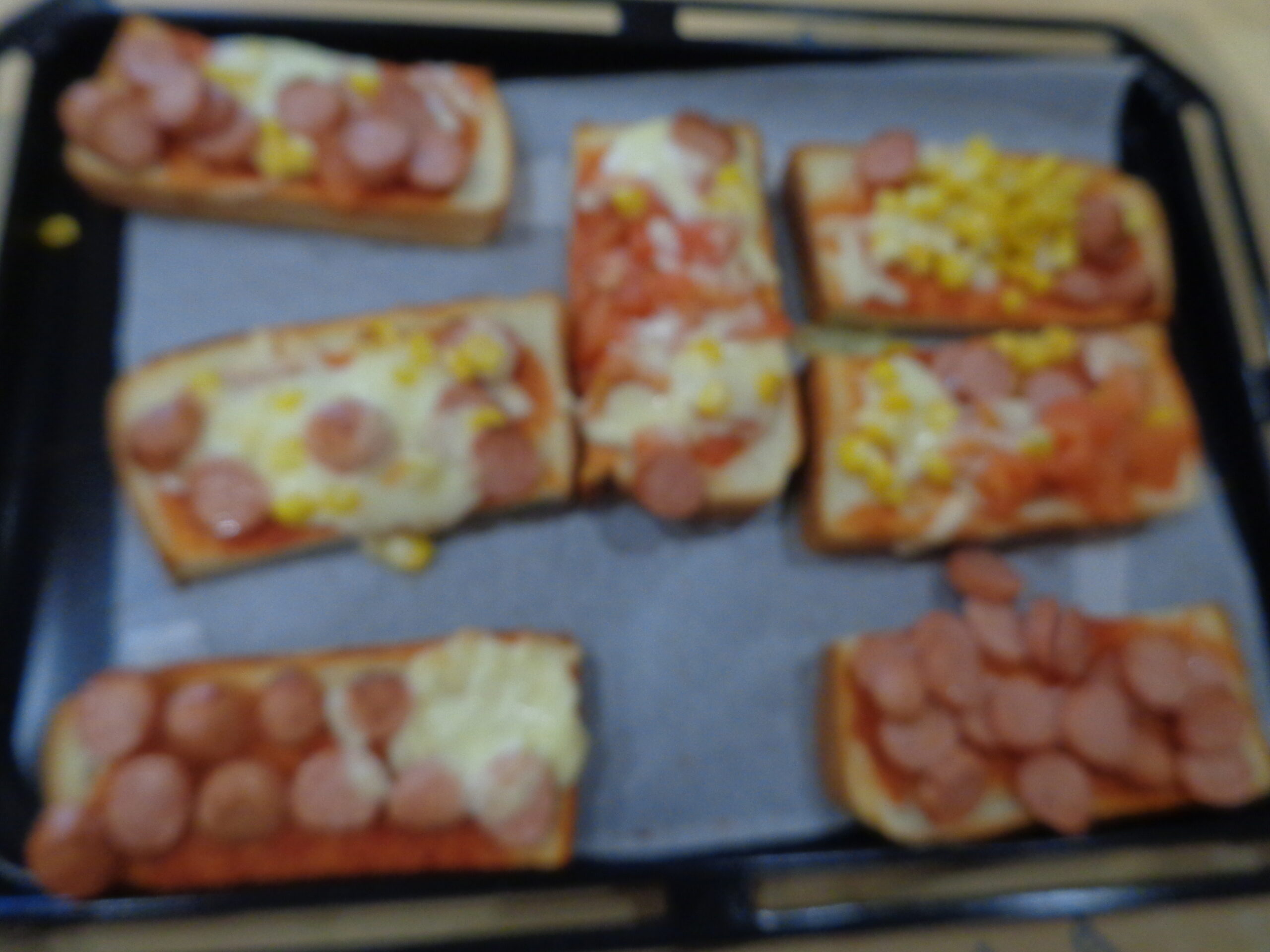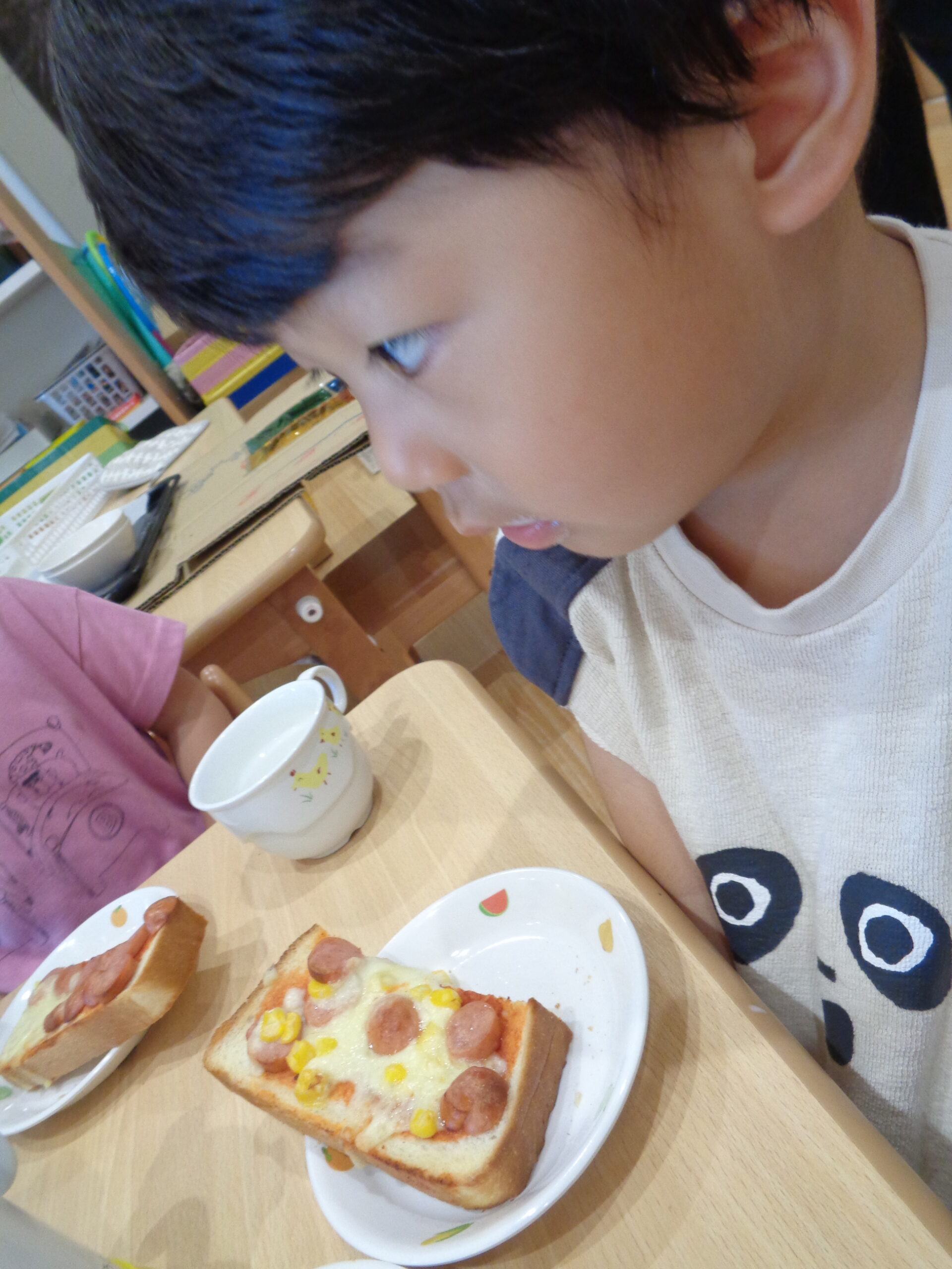 ピザに好きな具材をのせてみました!  あついけどおいしいね〜