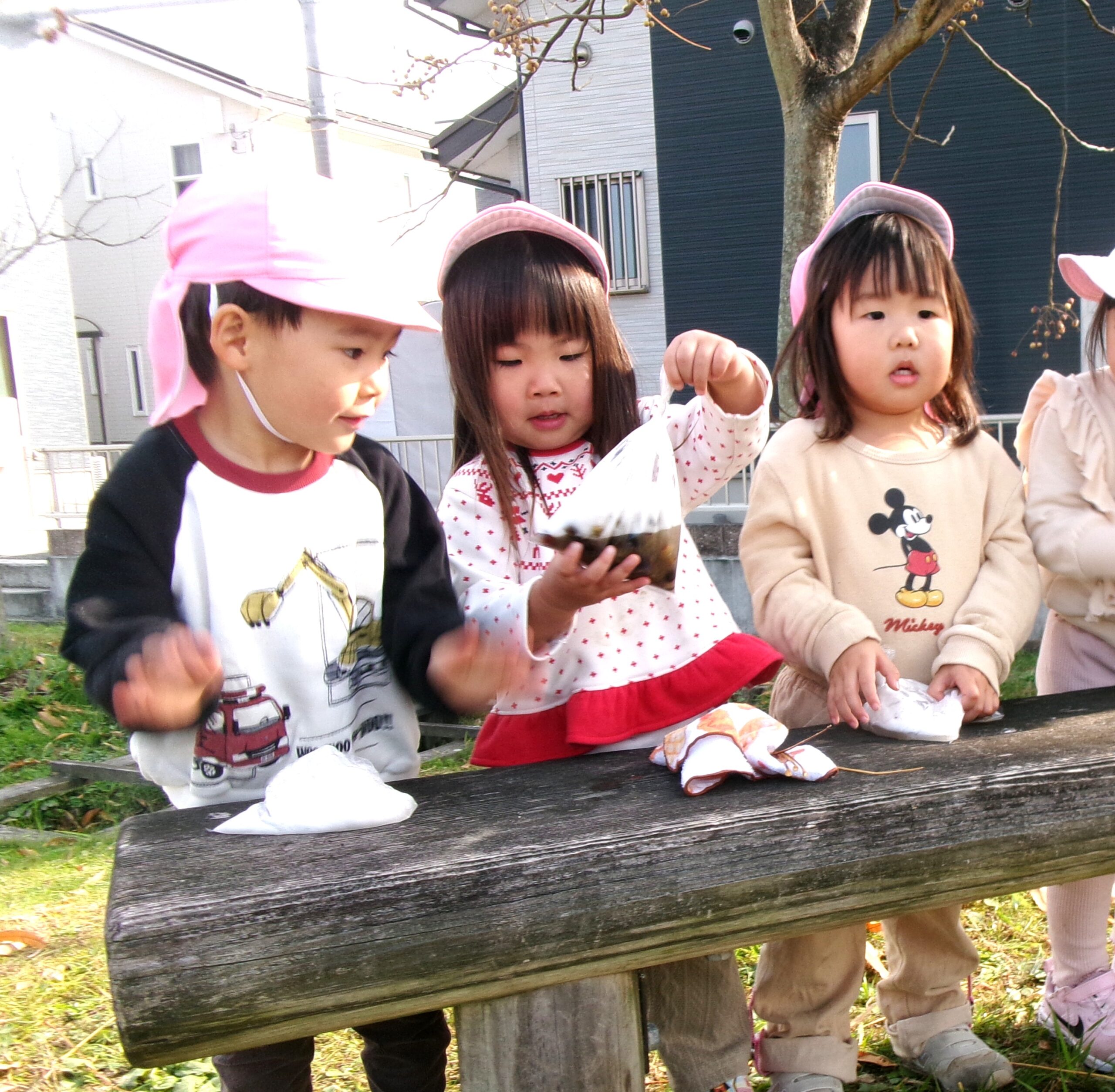 ムクロジの実を袋に入れて、水を入れてもみもみ、まぜまぜすると!泡あわになるよ!