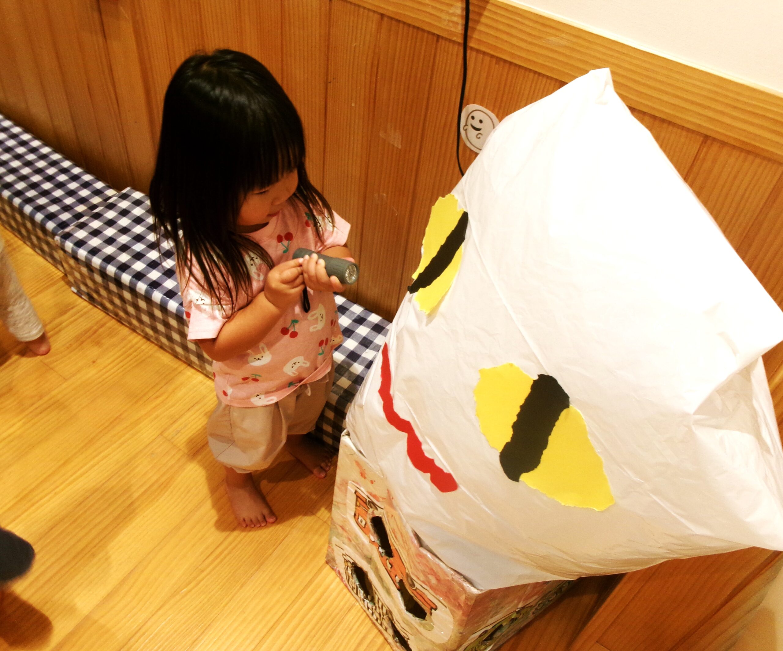 今日はお化け屋敷ごっこ!ライトで照らすとこわくないよ!!