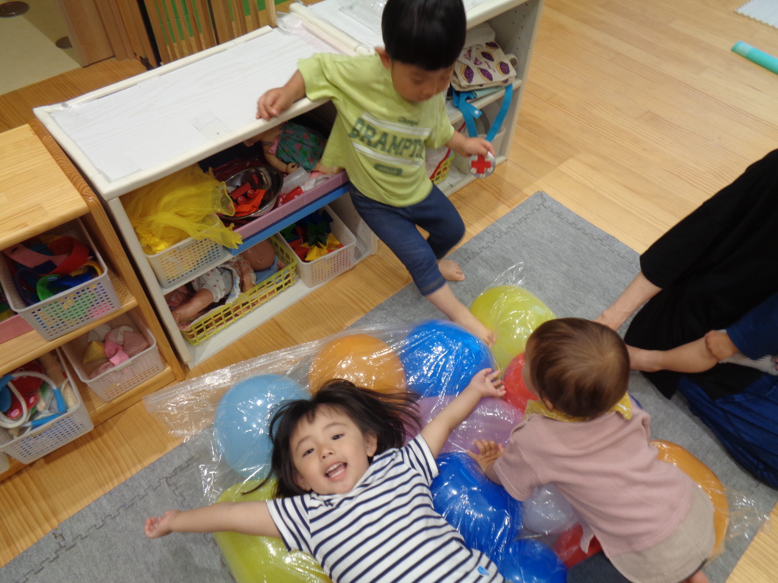 何が入っているのかなぁ? 風船ベッド気持ちいいなぁ〜!