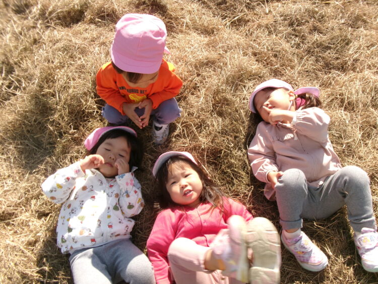 干し草の上はふっかふか〜!気持ちいいね〜♪