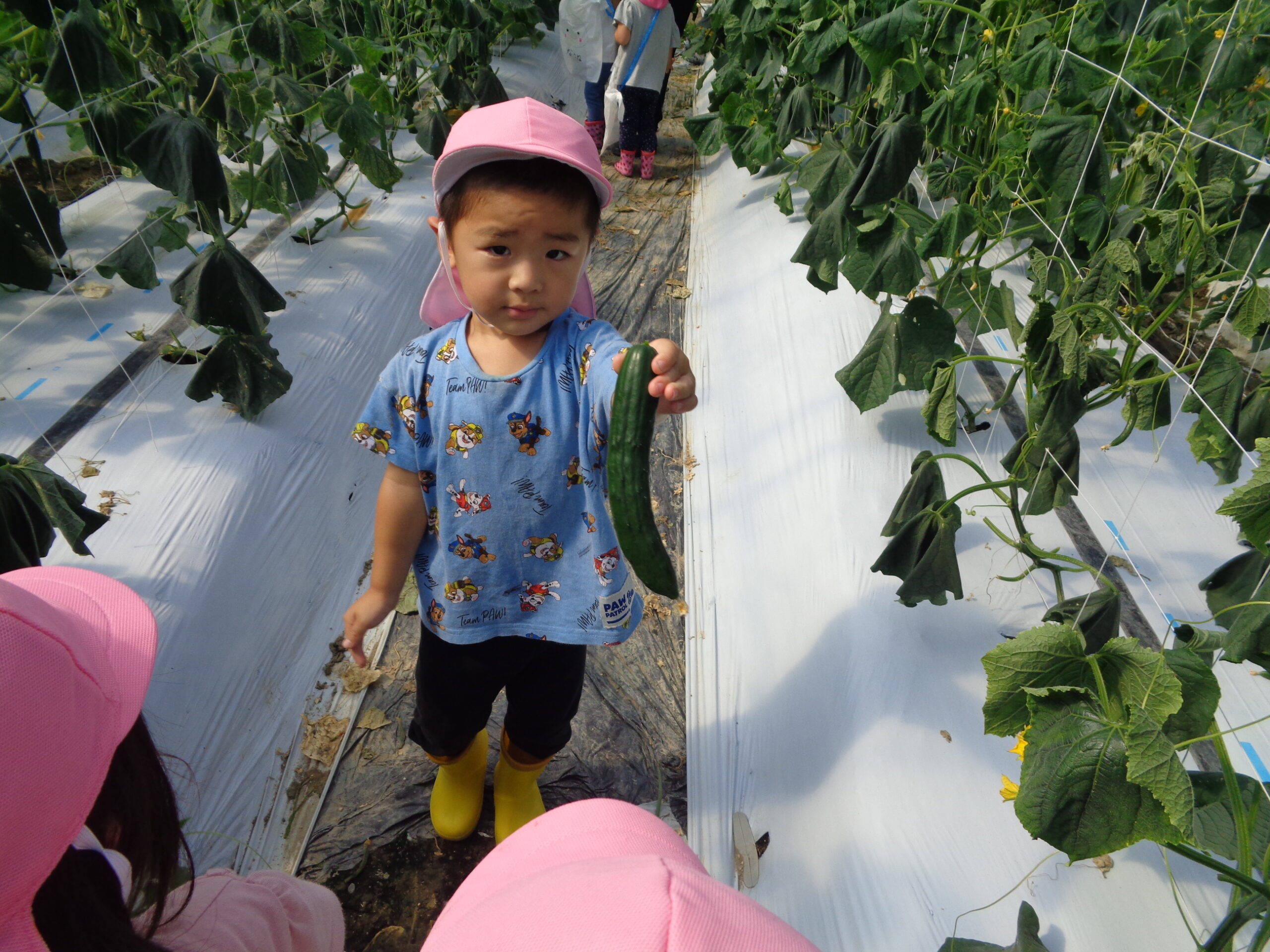 昨日は2歳児がタクシーに乗って、きゅうりの収穫体験をさせていただきました。北中ファームさん お世話になりましてありがとうございました!